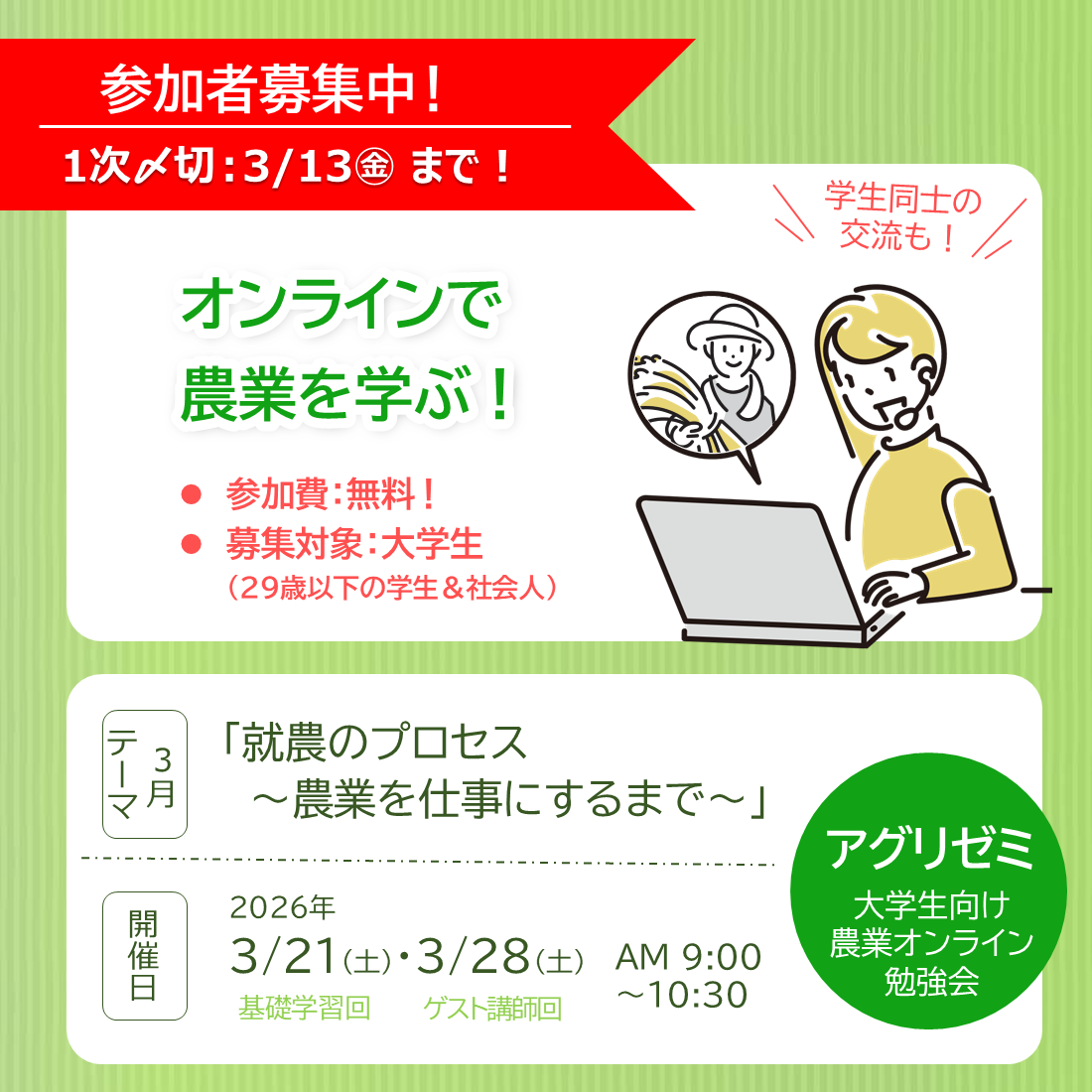 「将来は農業界で働きたい!」と考えている大学生の皆さん、ぜひお役立てください!