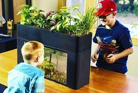 アクアポニックスは、『水産養殖(魚の養殖)と水耕栽培(土を使わずに水で栽培する農業)を掛け合わせた、新しい農業。魚と植物を1つのシステムで一緒に育てます。魚の排出物を微生物が分解し、植物がそれを栄養として吸収、浄化された水が再び魚の水槽へと戻る、地球にやさしい循環型農業』(「おうち菜園」サイトより引用)です。